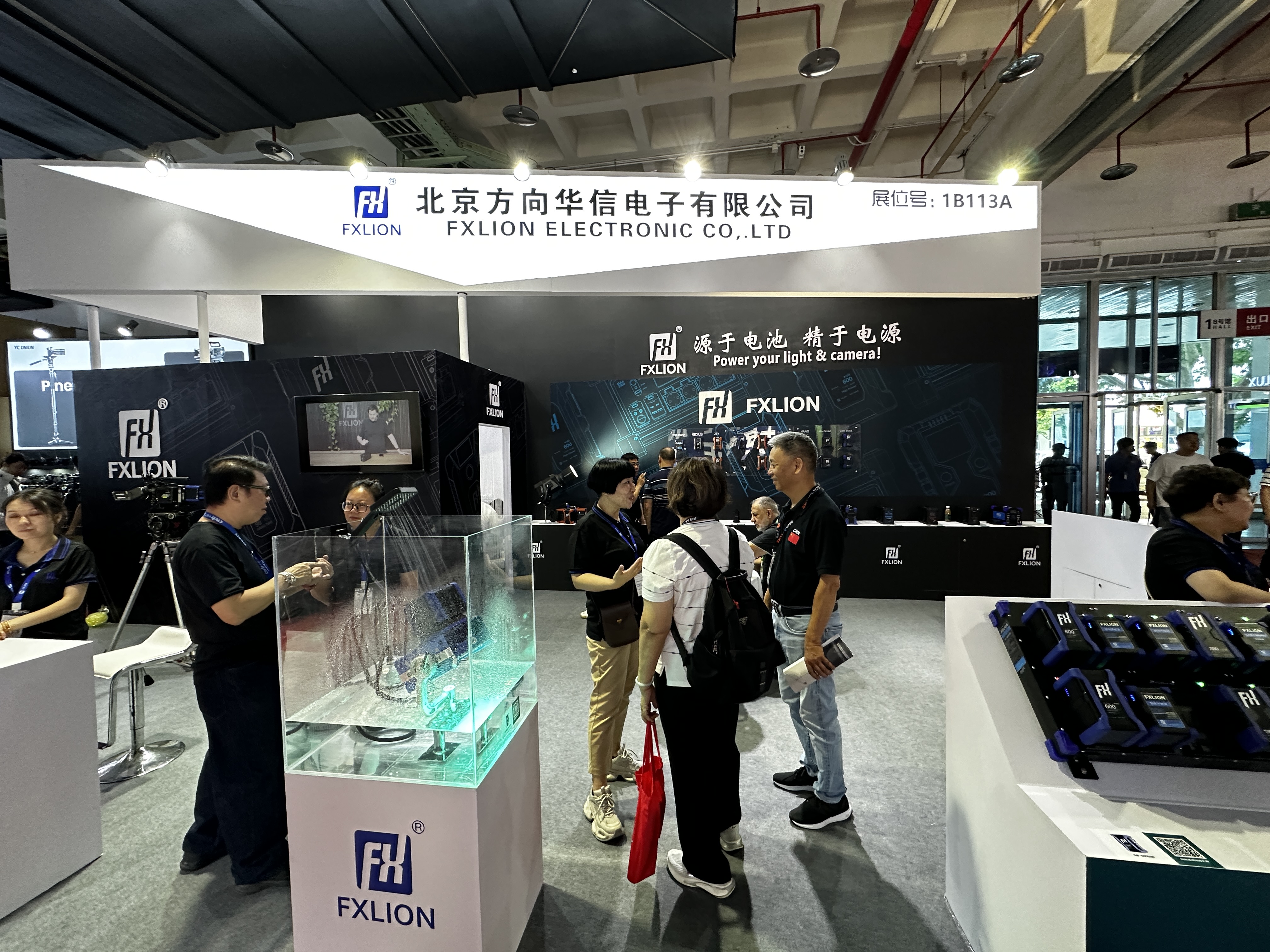 展位的背墙区域堪称视觉焦点,整齐陈列着我们全系列的电池产品,每一款都承载着技术沉淀与品质承诺,直观呈现出品牌在电池领域的完整布局。而在专业设备展示区,不间断电源电池挂板与阿莱摄像机的搭配演示尤为吸睛 —— 这一组合不仅完美适配专业拍摄设备,更能实时显示挂板上电池的电压状态,让现场观众直观感受到产品在实操中的便捷与可靠。